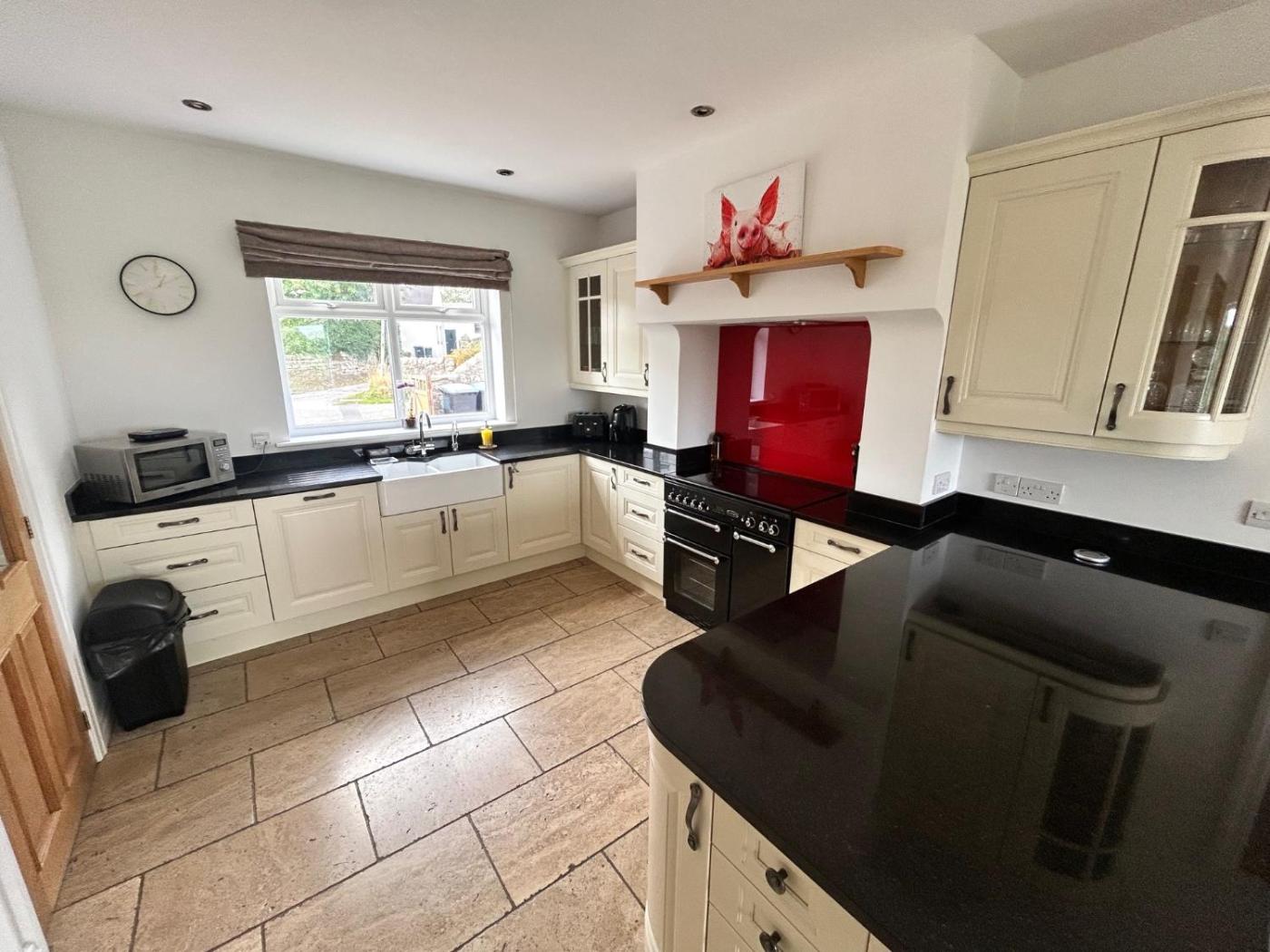 Three-Bedroom House. The fireplace is a top feature of this holiday home. Boasting a private entrance, this holiday home comes with 2 living rooms, 3 separate bedrooms and 1 bathroom with a bath and a shower. In the well-equipped kitchen, guests will find a refrigerator, a dishwasher, an oven and a microwave. The holiday home features a washing machine, a dining area, a sofa, a flat-screen TV, as well as garden views. The unit has 4 beds.