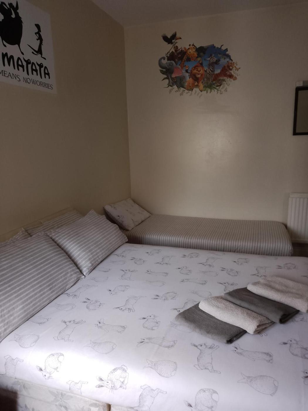 Family Room with Private Bathroom. The family room offers a carpeted floor and heating, as well as a private bathroom featuring a walk-in shower. The family room provides a tea and coffee maker, a seating area, a wardrobe, a flat-screen TV with cable channels, as well as city views. The unit offers 2 beds. ;