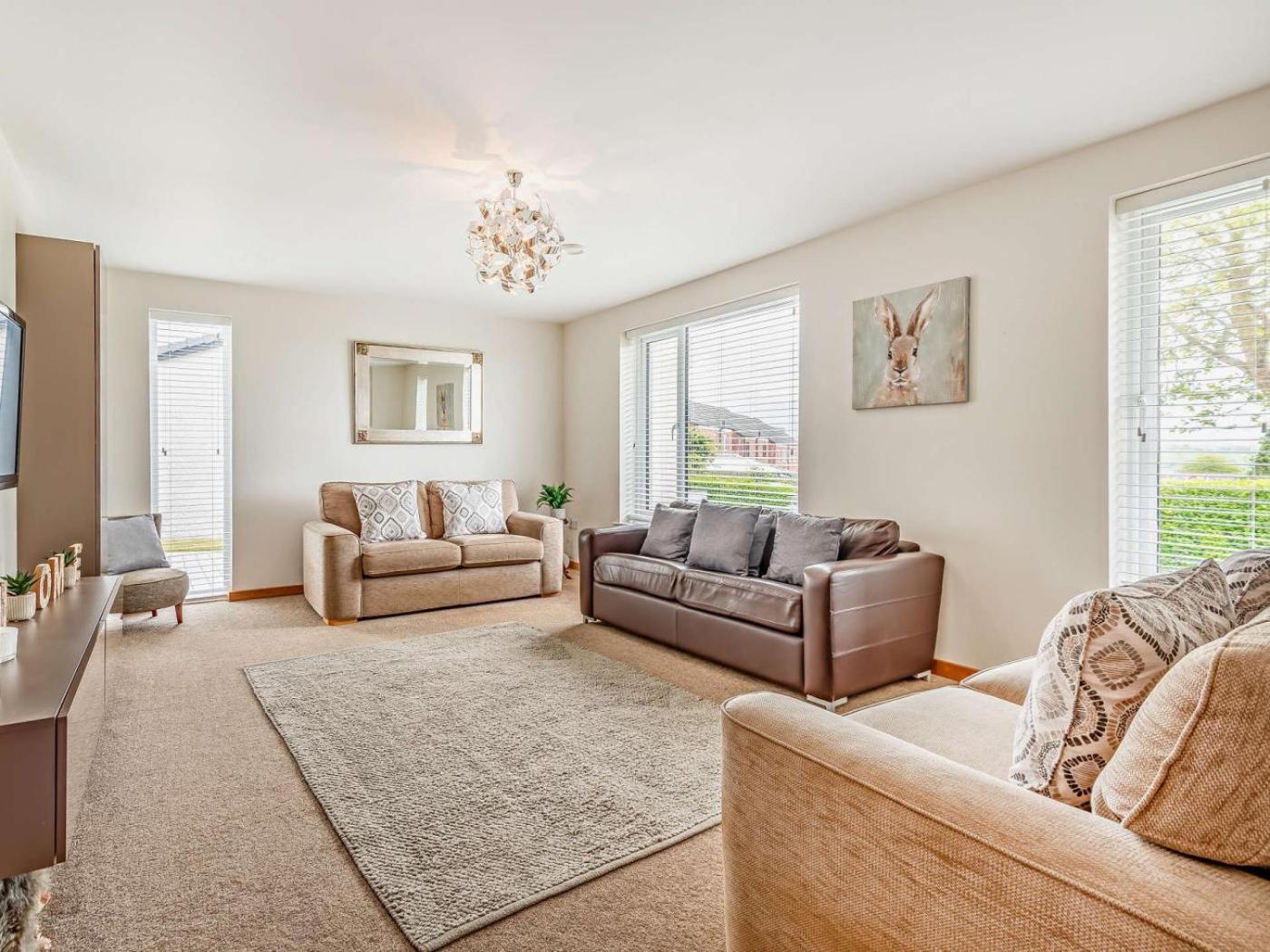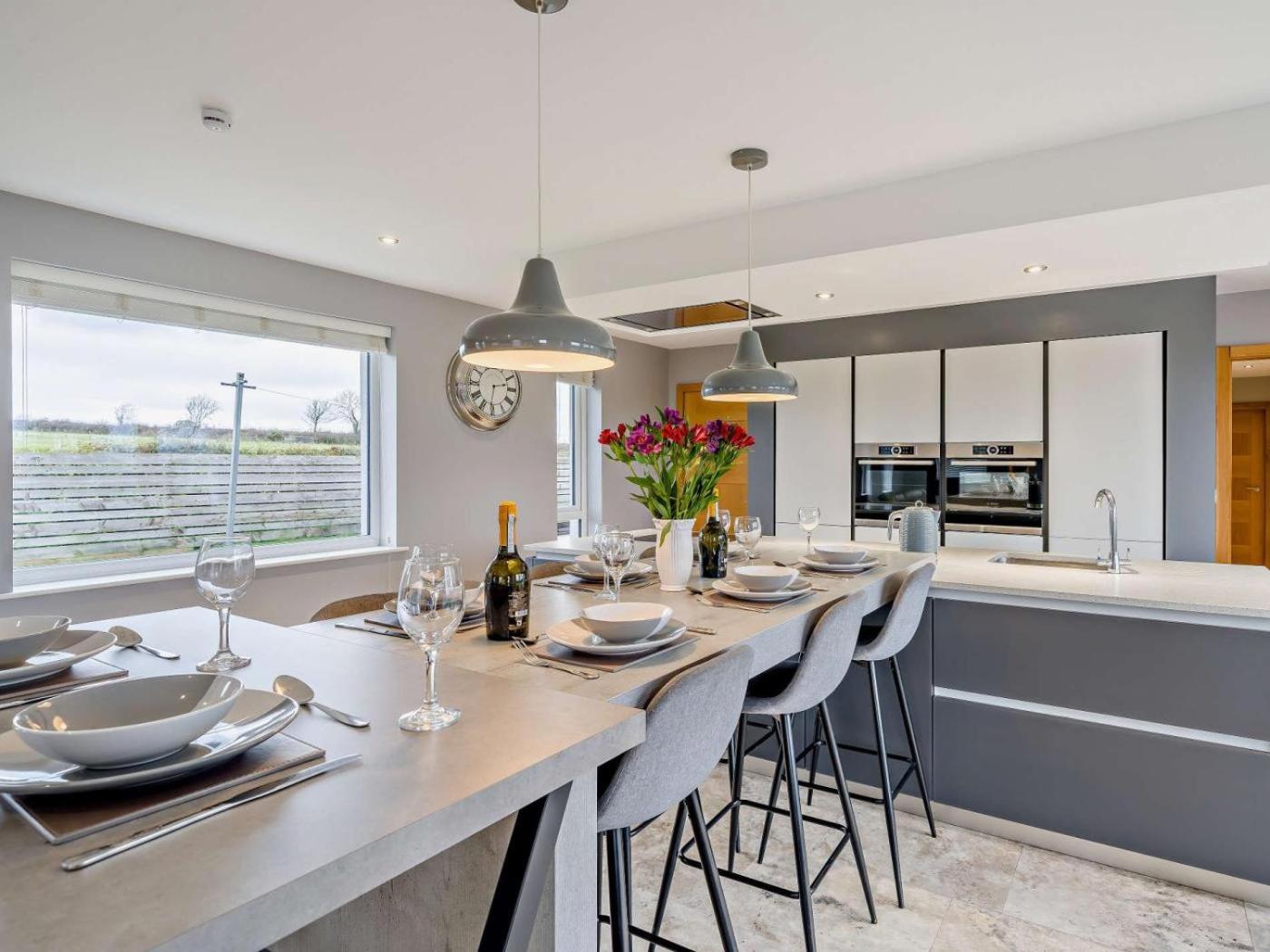 Four-Bedroom House. The holiday home has 4 bedrooms, 4 bathrooms and a kitchen. Guests can make meals in the kitchen that features a dishwasher, kitchenware and an oven. The holiday home features a washing machine, a barbecue, a high chair for children, a TV, as well as garden views. The unit has 5 beds.