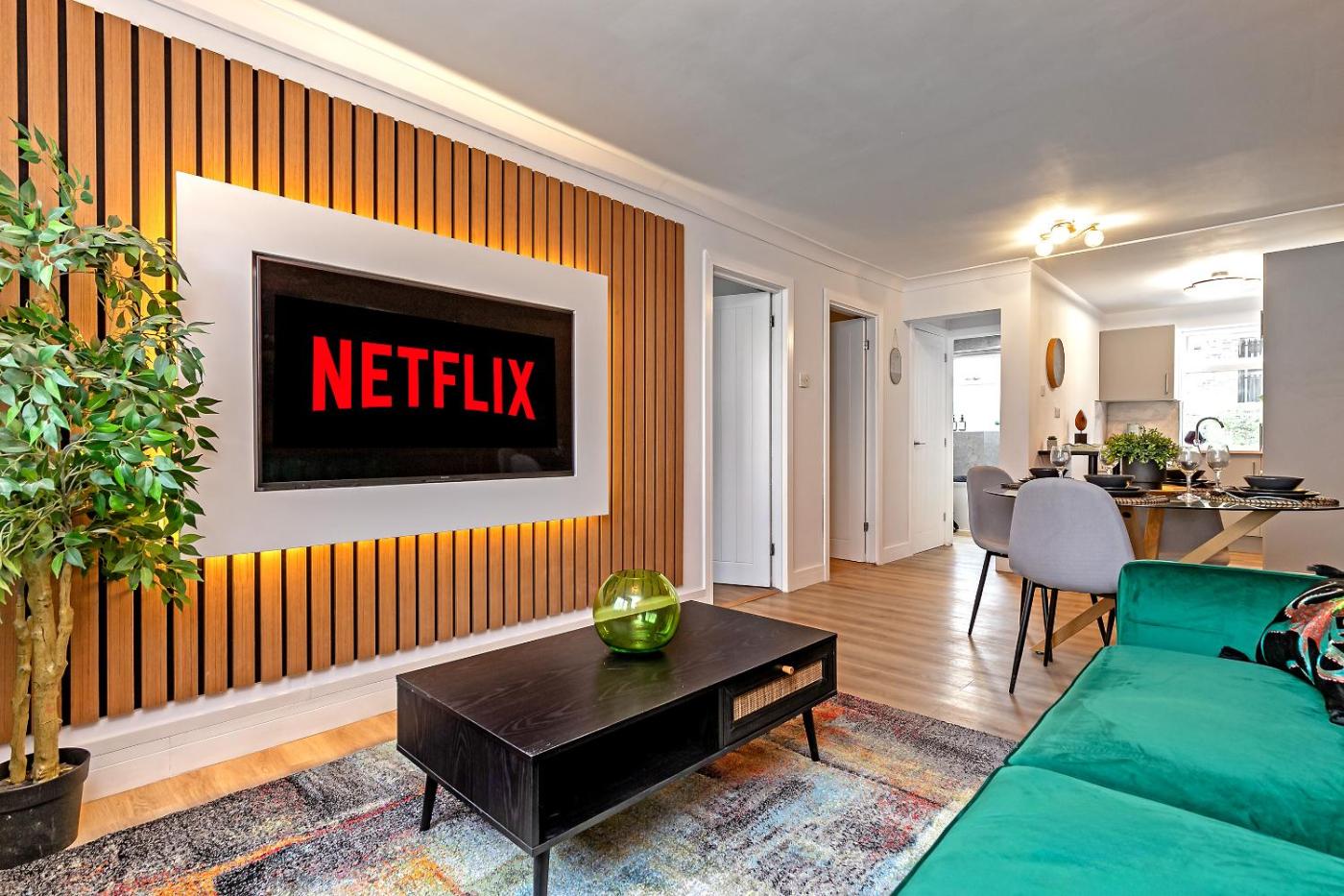 STUNNING MODERN Apartment Near AIRPORT & CENTRE, FREE PARKING, AMAZING LED MEDIA WALL & LUXURY MASTER BEDROOM