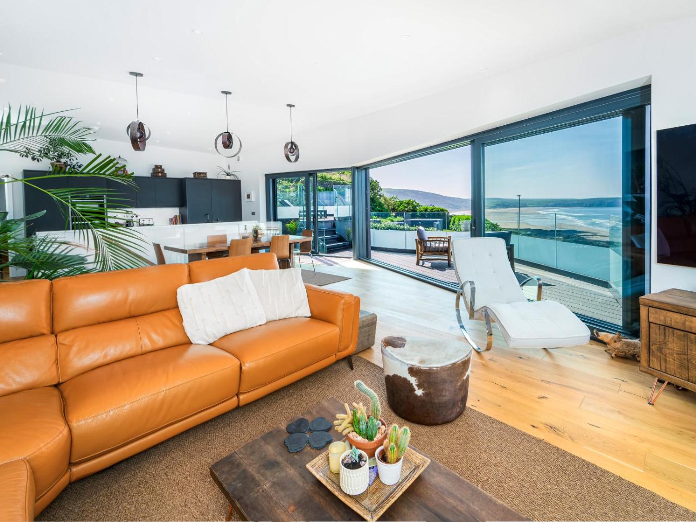 Set in Mortehoe and only 1.3 km from Woolacombe Beach, Cyan offers accommodation with sea views, free WiFi and free private parking. The 5-star holiday home is 41 km from Royal North Devon Golf Club. The property is non-smoking and is situated 40 km from Lundy Island.