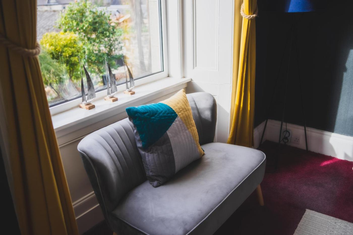 Single Room with Private External Bathroom. Bright spacious room with views towards Kerrera and Mull. Includes a large day bed and a private external bathroom nearby. ;