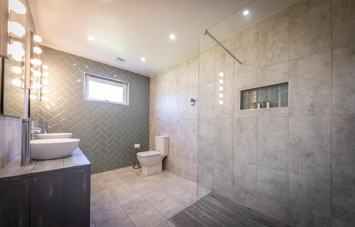 Four-Bedroom House. This holiday homes special feature is the fireplace. This spacious holiday home consists of 1 living room, 4 separate bedrooms and 3 bathrooms with a walk-in shower and free toiletries. The fully equipped kitchen features a stovetop, a refrigerator, a dishwasher and kitchenware. The holiday home provides a washing machine, a private entrance, a tea and coffee maker, a flat-screen TV, as well as sea views. The unit offers 4 beds.