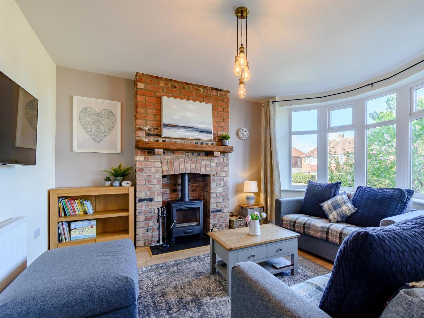 Three-Bedroom Holiday Home. This holiday home features a fireplace. Boasting a private entrance, this holiday home features 3 bedrooms, 1 bathroom and a kitchen. The holiday homes kitchen, which features a dishwasher, is available for cooking and storing food. This holiday home has a washing machine, heating and a TV. The unit has 4 beds.