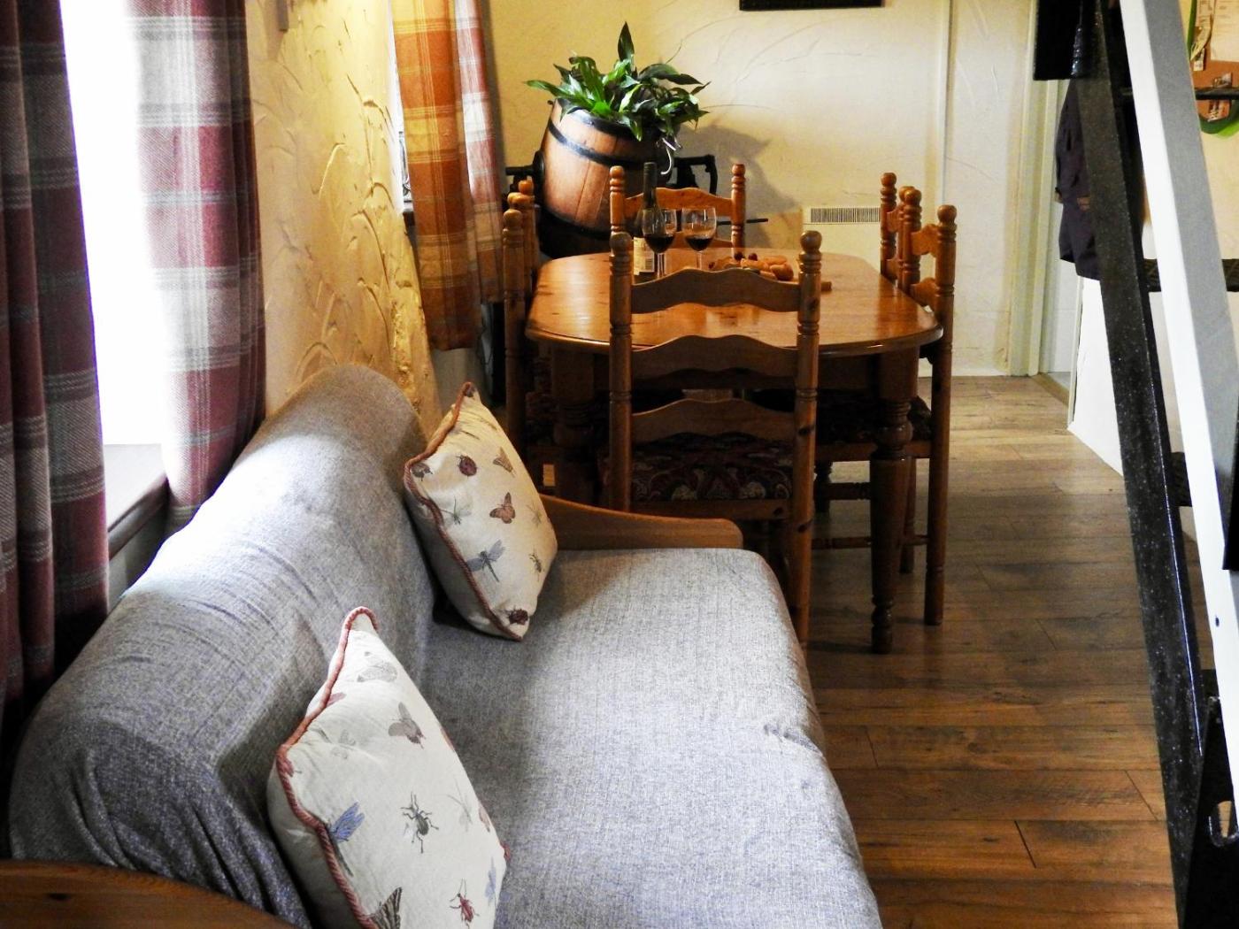 Holiday Home. The fireplace is the standout feature of this holiday home. This holiday home comes with 1 bedroom, a seating area with a sofa and 1 bathroom with a walk-in shower. Guests can make meals in the kitchen that features a stovetop, a refrigerator, a microwave and a toaster. The holiday home features a dining area, a wardrobe, an electric kettle, heating, as well as a TV. The unit has 2 beds.